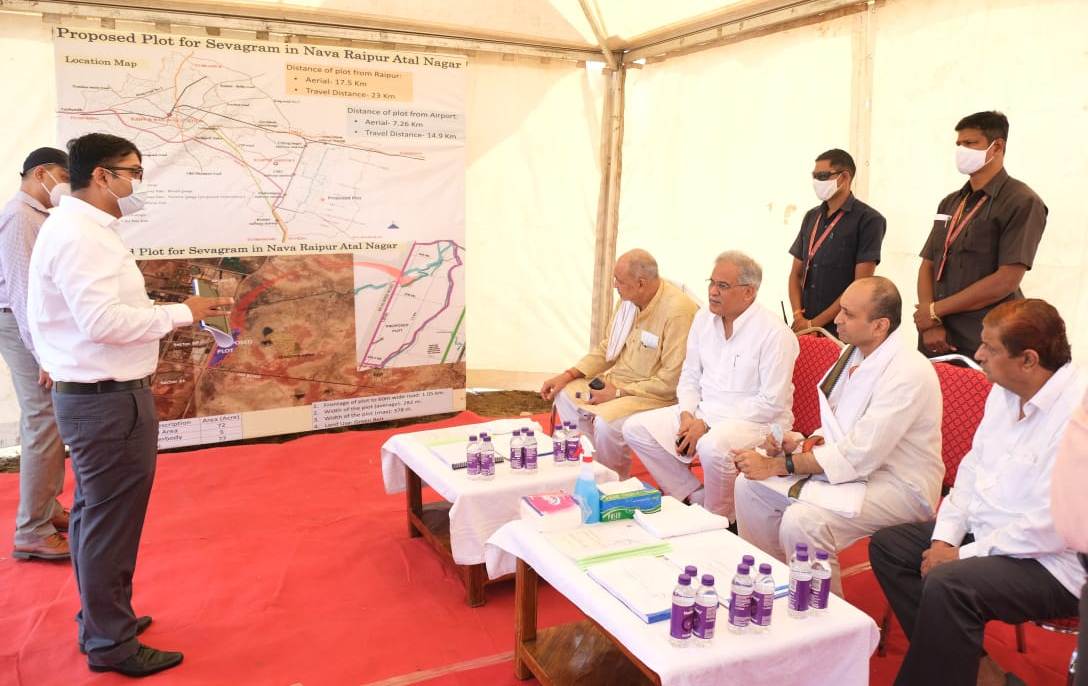 निरीक्षण के दौरान अधिकारियों ने बताया कि सेवाग्राम के लिए नवा-रायपुर में 76.5 एकड़ जमीन चिन्हांकित की गई है। यह स्थान नवा रायपुर के लेयर वन से लगा हुआ है। इस स्थल में लगभग पांच एकड़ क्षेत्र में दो नहर भी है। शेष 71 एकड़ भूमि में सेवाग्राम बसाया जाएगा। सेवाग्राम को इस ढंग से विकसित किया जाएगा कि वहां छत्तीसगढ़ की परंपरागत ग्रामीण भवन शैली की झलक दिखे। निर्माण कार्यों में स्थानीय स्तर पर उपलब्ध निर्माण सामग्री का उपयोग होगा। आश्रम के अंदर की सड़के भी ग्रामीण परिवेश के अनुरूप होंगी। सेवा ग्राम तक पूरा क्षेत्र हरियाली से भरपूर रहेगा। आश्रम का पूरा वातावरण आत्मिक शांति प्रदान करेगा।