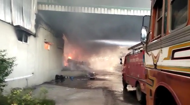 इंदौर। इंदौर के सांवेर रोड स्थित इनोप्लेक्सस प्राइवेट लिमिटेड फैक्ट्री में शुक्रवार रात को भीषण आग लग गई। हादसे में दमकल का एक जवान झुलस गया है। वहीं फैक्ट्री के 35 कर्मचारियों को सुरक्षित बाहर निकाला गया है। आग बुझाने के लिए दमकल की 10 गाड़ियां अभी भी मौके पर मौजूद हैं।