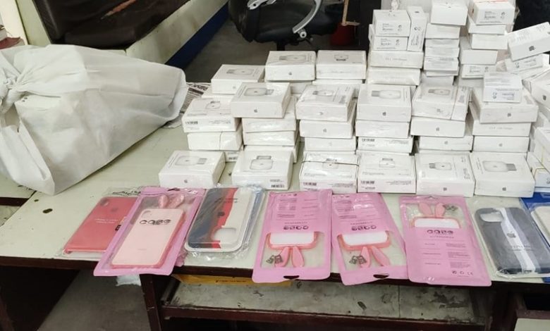 जानकारी के मुताबिक गिरफ्तार आरोपी के नाम विनय कृष्णानी और अशोक कुमार चेनानी है। पुलिस ने तलाशी के दौरान दुकान और गोदाम से भारी मात्रा में नकली आईफोन, नकली मोबाइल कवर, एप्पल कंपनी के नकली लाइटिंग केबल, यूएसबी केबल, यूएसबी पावर एडाप्टर, एप्पल कंपनी के वायरलेस इयरफोन समेत भारी मात्रा में एप्पल कंपनी का नकली सामान जब्त किया गया। जब्त किए गए सामान की कीमत करीरब 1 लाख रुपये बताई जा रही है। फिलहाल पुलिस ने आरोपियों के खिलाफ कॉपीराइट एक्ट के तहत मामला दर्ज किया है।