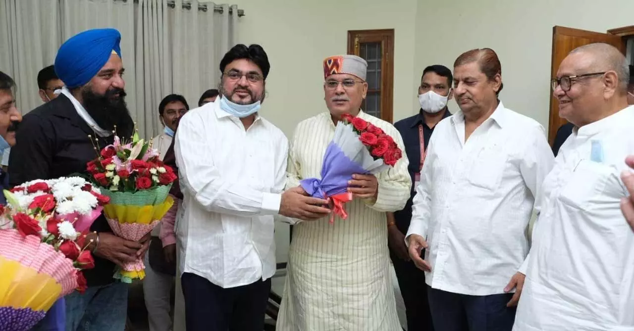 रायपुर। मुख्यमंत्री भूपेश बघेल ने मंगलवार शाम अपने निवास कार्यालय में छत्तीसगढ़ सीमेंट ट्रांसपोर्ट एसोसिएशन के प्रतिनधिमण्डल ने परिवहन मंत्री मोहम्मद अकबर की उपस्थिति में सौजन्य मुलाकात की। छत्तीसगढ़ सीमेंट ट्रांसपोर्ट एसोसिएशन के पदाधिकारियों ने मुख्यमंत्री को दीपोत्सव की हार्दिक बधाई एवं शुभकामनाएं दीं और ट्रांसपोर्टरों के हित में लिए गए निर्णय के लिए राज्य शासन का आभार जताया।