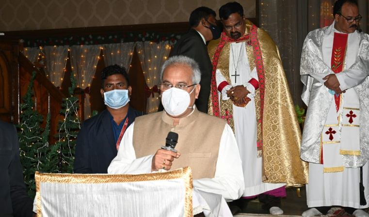 रायपुर। मुख्यमंत्री भूपेश बघेल आज क्रिसमस पर्व पर राजधानी रायपुर के सेन्ट पॉल केथेड्रल पहुंचकर प्रार्थना में शामिल हुए और प्रदेश के सुख-समृद्धि के लिए प्रार्थना की। उन्होंने मसीही समाज सहित समस्त प्रदेशवासियों को क्रिसमस की बधाई और शुभकामनाएं दीं। इस अवसर पर बघेल ने कहा कि प्रेम, दया, करुणा और ईश्वर पर विश्वास ही मुक्ति का रास्ता है। यही रास्ता प्रभु यीशु मसीह ने हमें दिखाया है। जहां प्रेम और सद्भाव होगा वहां विकास भी होगा। छत्तीसगढ़ की संस्कृति के मूल्य भी यही हैं और छत्तीसगढ़ शासन का मूलमंत्र भी यही है।