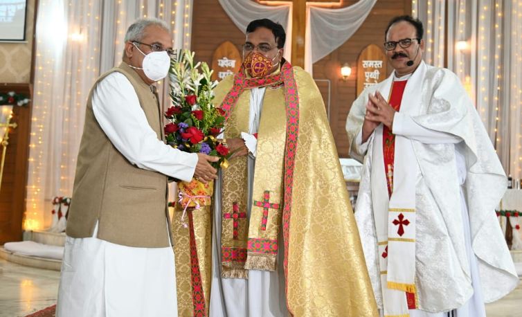 मुख्यमंत्री ने केथेड्रल में उपस्थित लोगों के साथ केक काटकर क्रिसमस सेलिब्रेट किया। चर्च में उपस्थित सभी लोगों ने प्रभु की प्रार्थना की। चर्च के गायन दल ने कैरोल गीत प्रस्तुत किए। नवनिर्वाचित बिशप अजय जेम्स द्वारा मुख्यमंत्री भूपेश बघेल का पुष्पगुच्छ भेंटकर स्वागत किया गया।