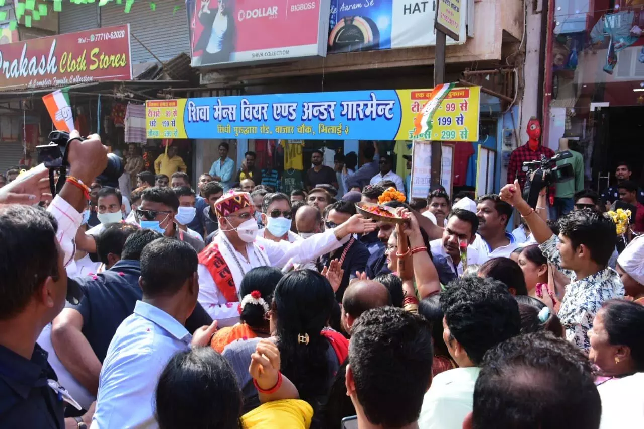 चरौदा के वसंधुरा नगर में मुख्यमंत्री भूपेश बघेल ने रोड शो किया। इस दौरान लोगों ने उनका स्वागत किया। इससे पहले सीएम भूपेश बघेल ने चरौदा में 41 करोड़ 23 लाख रपये की लागत के 180 विभिन्न विकास कार्यों का भूमिपूजन और लोकार्पण किया। उन्होंने इन कार्यों में से 40 करोड़ रुपये की लागत के 172 कार्यों का भूमिपूजन और 1 करोड़ 23 लाख रुपये की लागत के 8 कार्यों का लोकार्पण किया। इस अवसर पर वन एवं जिले के प्रभारी मंत्री मोहम्मद अकबर, नगरीय प्रशासन और विकास मंत्री डॉ. शिवकुमार डहरिया और लोक स्वास्थ यांत्रिकी मंत्री गुरू रूद्रकुमार भी उपस्थित थे।