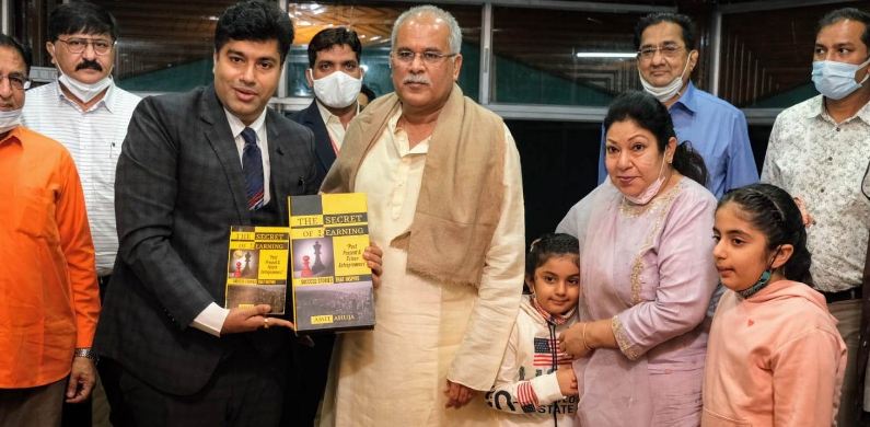 रायपुर। मुख्यमंत्री भूपेश बघेल ने गुरूवार शाम यहां अपने निवास कार्यालय में अमित अहूजा द्वारा लिखित पुस्तक द सीक्रेट ऑफ लर्निंग का विमोचन किया। अमित अहूजा ने मुख्यमंत्री को बताया कि यह किताब व्यापार जगत के बदलते हुए दौर के प्रसंगों पर आधारित है। इस किताब के माध्यम से पाठकों को व्यापार जगत में सफल हुए उद्यमियों के बारे में महत्वपूर्ण जानकारी मिल सकेगी। मुख्यमंत्री भूपेश बघेल ने अमित आहूजा को किताब के लेखन के लिए बधाई और शुभकामनाएं दी।