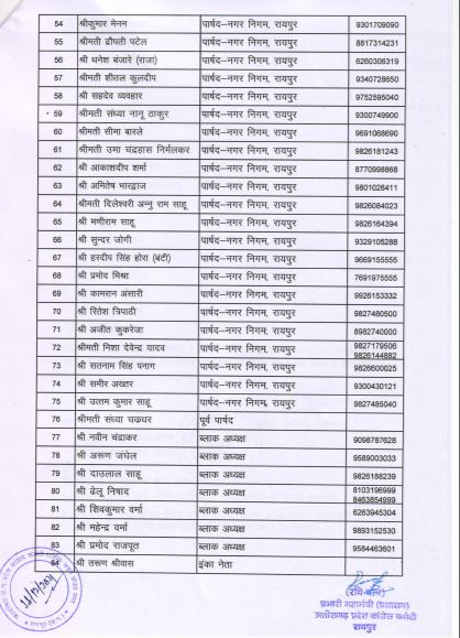 कांग्रेस के प्रदेश अध्यक्ष मोहन मरकाम के निर्देश के बाद नेताओं को ये जिम्मेदारी दी गई है। प्रदेश महामंत्री रवि घोष ने इन नेताओं की सूची जारी कर दी है। इसमें कृषि मंत्री रविंद्र चौबे, गृह मंत्री ताम्रध्वज साहू और नगरीय प्रशासन मंत्री डॉ. शिव कुमार डहरिया का नाम शामिल है।