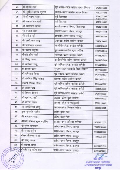 बिलासपुर महापौर रामशरण यादव और रायपुर महापौर एजाज ढेबर को भी इस प्रचार टीम का हिस्सा बनाया गया है। इनके साथ ही रायपुर नगर निगम के 28 कांग्रेस पार्षद बीरगांव में कांग्रेस उम्मीदवारों का प्रचार करेंगे। बीरगांव सहित प्रदेश के 15 शहरों के आम चुनाव में 20 दिसंबर को मतदान होगा।
