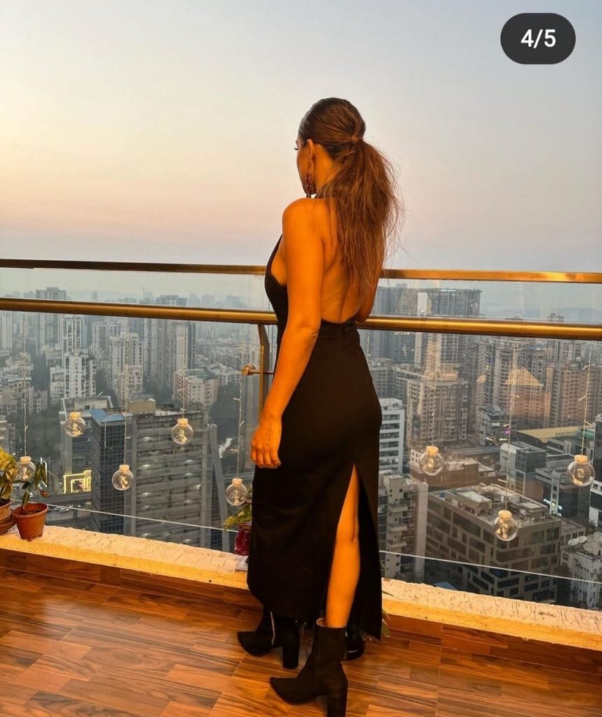 निया ब्लैक गाउन में काफी ग्लैमरस नजर आ रही है , उनकी इस फोटो को काफी लाइक्स और कमेंट मिल रहे हैं। निया का ये गाउन सिर्फ एक ब्रोच पर टिका हुआ है। वह बालकनी में खड़े होकर बैक साइड और क्लीवेज फ्लॉन्ट कर रही हैं। न्यूड मेकअप किया हुआ है और बालों को बांधा हुआ है। हालांकि लोग उन्हें इस ड्रेस के लिए जमकर ट्रोल भी कर रहे हैं।