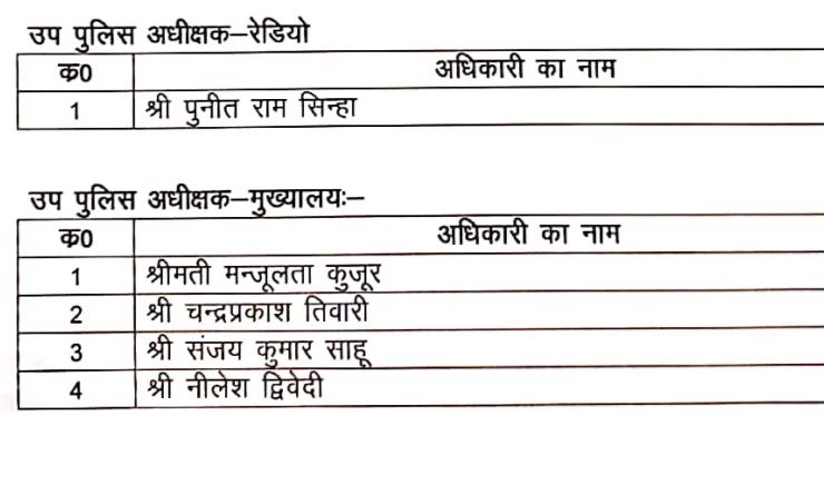 इनमें 47 अधिकारियों की पदोन्नति उप पुलिस अधीक्षक के पद पर, 19 अधिकारियों की सहायक सेनानी, एक अधिकारी की उप पुलिस अधीक्षक रेडियो, 04 अधिकारियों की उप पुलिस अधीक्षक (मुख्यालय) तथा तीन अधिकारियों को उप पुलिस अधीक्षक एम के पद पर पदोन्नत किया गया है।