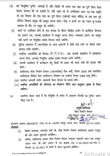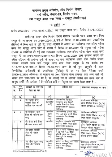 रायपुर। प्रमुख अभियंता लोक निर्माण विभाग रायपुर द्वारा व्यावसायिक परीक्षा मंडल की संयुक्त भर्ती परीक्षा के माध्यम से चयनित 36 नये उप अभियंता सिविल के पद पर नियुक्ति एवं पदस्थापना का आदेश जारी किया गया है। चयनित अभ्यर्थियों को 31 दिसम्बर तक पदस्थापना कार्यालय में कार्यभार ग्रहण करने के निर्देश किए गए हैं। लोक निर्माण विभाग ने 30 से ज्यादा सब इंजीनियर की पोस्टिंग जारी की है।