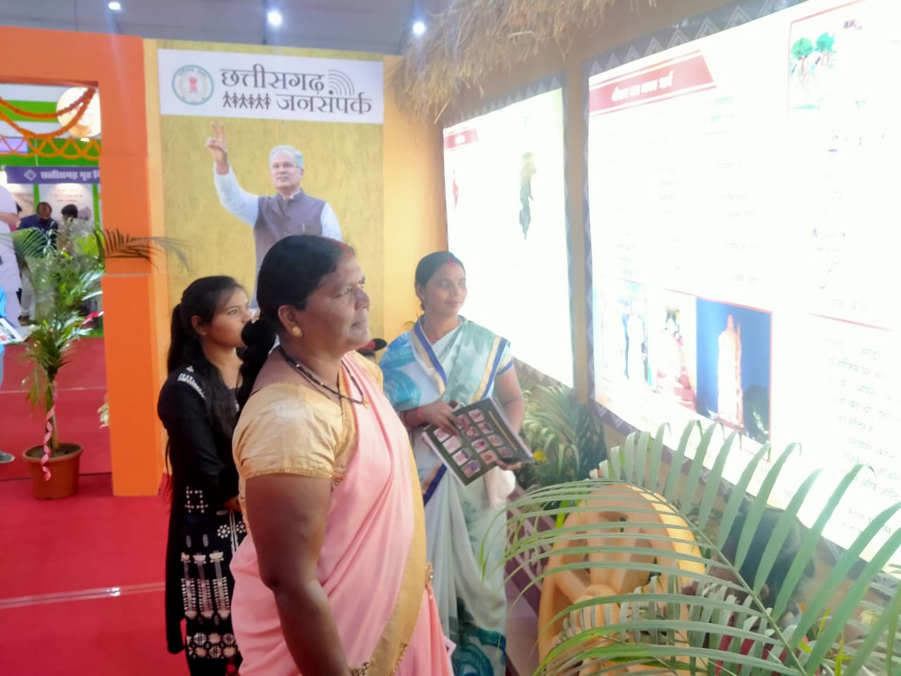 जनसंपर्क विभाग की प्रदर्शनी में 1 नवम्बर 2000 छत्तीसगढ़ राज्य स्थापना दिवस की प्रारंभिक जानकारी के अलावा, मर्यादा पुरूषोत्तम भगवान रामचन्द्र जी के वन गमन मार्ग, आदिवासी बहुल बस्तर की धरोहर, छत्तीसगढ़ का खजुराहों के नाम से प्रसिद्ध भोरमदेव मंदिर, दक्षिण कौशल की राजधानी सिरपुर का लक्ष्मण मंदिर, पुरातात्विक छत्तीसगढ़ आदिकालीन छत्तीसगढ़-शैलचित्रों की खोज, छत्तीसगढ़ के लोक नृत्य, छत्तीसगढ़ के जलप्रपात, छत्तीसगढ़ के पारंपरिक श्रृंगार को सुरूचिपूर्ण ढंग से प्रदर्शित किया गया है। जनसंपर्क के स्टॉल में लोक कलाकार रिखी क्षत्रिय द्वारा छत्तीसगढ़ के पारंपरिक वाद्य यंत्रों को प्रदर्शित किया गया है।