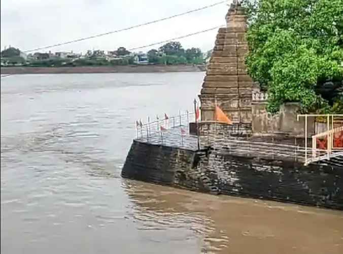 राजिम में त्रिवेणी संगम के बीच बना प्रसिद्ध कुलेश्वरनाथ महादेव मंदिर पानी से घिर गया है। उसका चबूतरा करीब-करीब डूब चुका है। इसकी वजह से श्रद्धालुओं का मंदिर पहुंचना बंद हो गया है। बताया जा रहा है- पिछले तीन-चार सालों में राजिम स्थित महानदी, सोंढुर और पैरी नदियों के पवित्र संगम में ऐसी बाढ़ नहीं आई थी। आसपास के गांवों से बड़ी संख्या में लोग राजिम पुल पर पहुंचकर संगम में बाढ़ का नजारा देख रहे हैं।