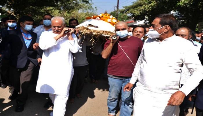 अनंत यात्रा पर रमेश वर्ल्यानी: सीएम भूपेश ने दिया कंधा, नंगे पैर अंतिम यात्रा में हुए शामिल