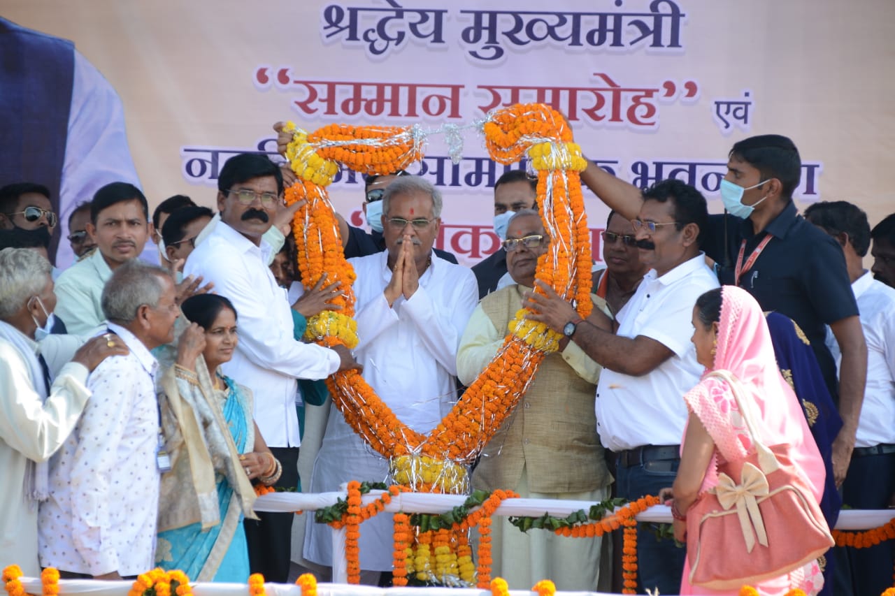 मुख्यमंत्री भूपेश बघेल ने साहू समाज की ओर से आयोजित सम्मान समारोह में भक्त माता कर्मा के जयकारे के साथ अपने उद्बोधन में कहा कि प्रदेश में गांवों के किसान एवं श्रमिक खुशहाल रहे, इसके लिए छत्तीसगढ़ सरकार द्वारा राजीव गांधी किसान न्याय योजना और भूमिहीन कृषि मजदूर न्याय योजना तथा श्रमिकों के कल्याण की योजनाएं शुरू की है।